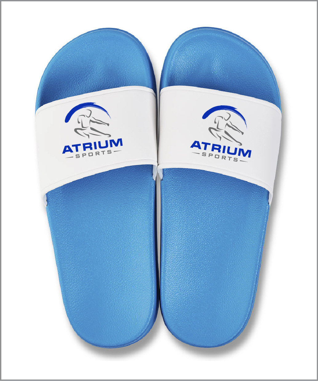 Atrium Badelatschen blau weiß inkl. Aufdruck