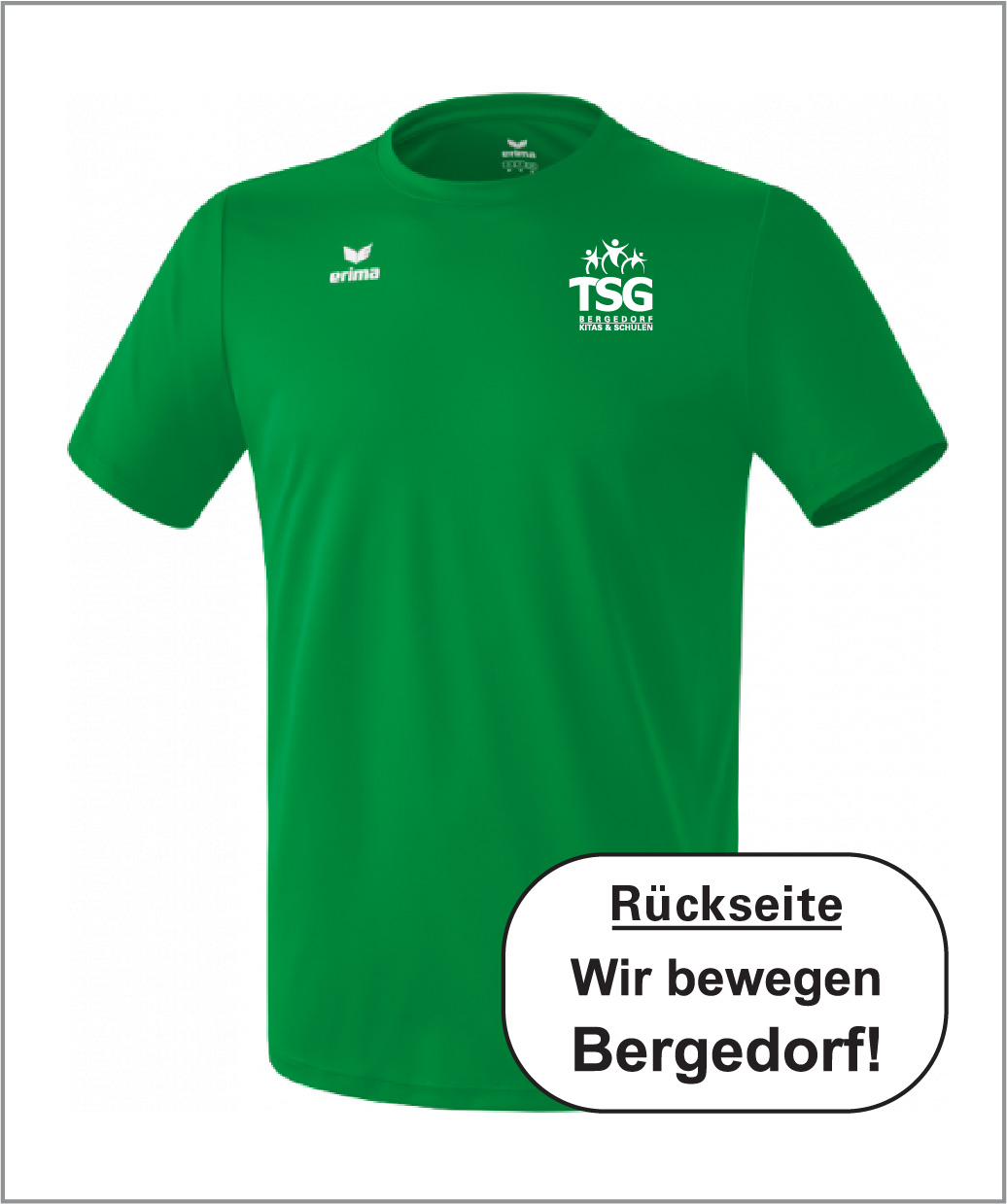 Erima Funktion T-Shirt smaragd inkl. Wappen und “Wir bewegen Bergedorf”