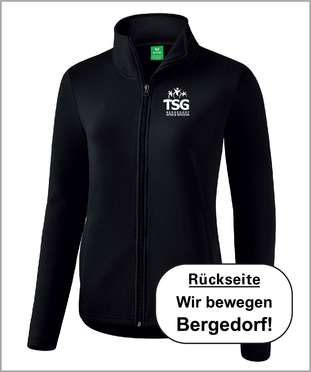 Erima Sweatjacke Damen schwarz inkl. Wappen und “Wir bewegen Bergedorf”