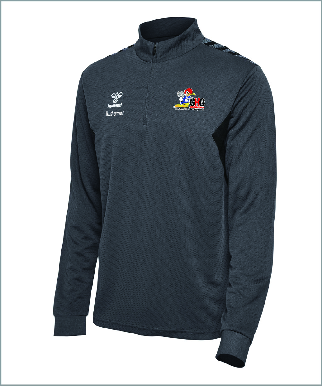 GHG Hummel Half Zipper Unisex asphalt inkl. Aufdruck Gr. XL ohne Namen groß hinten