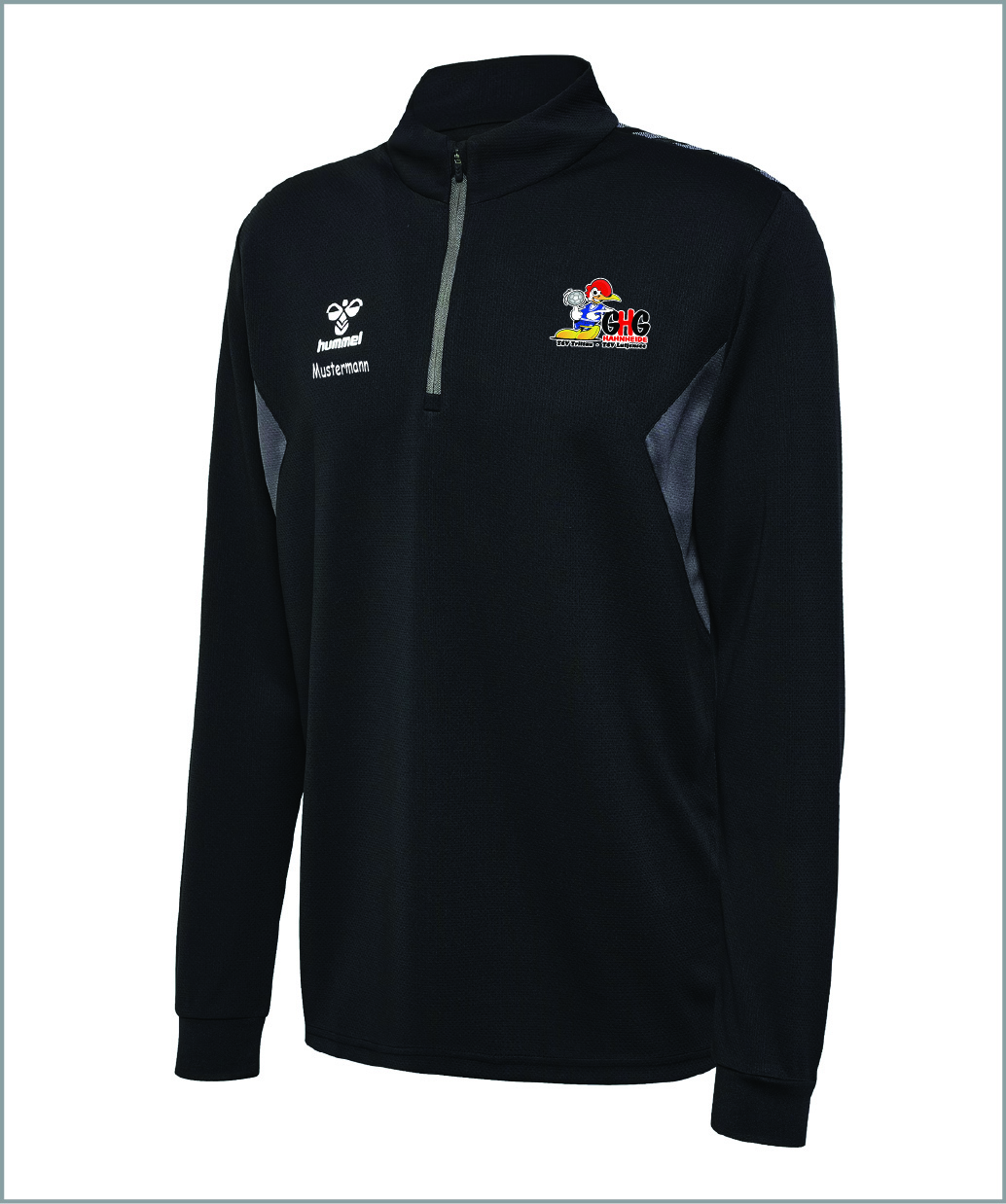 GHG Hummel Half Zipper Unisex schwarz inkl. Aufdruck Gr. L ohne Namen groß hinten