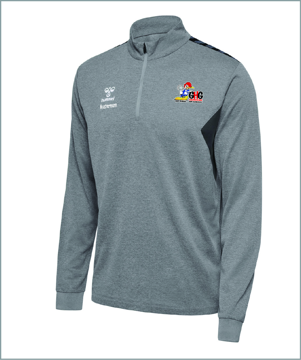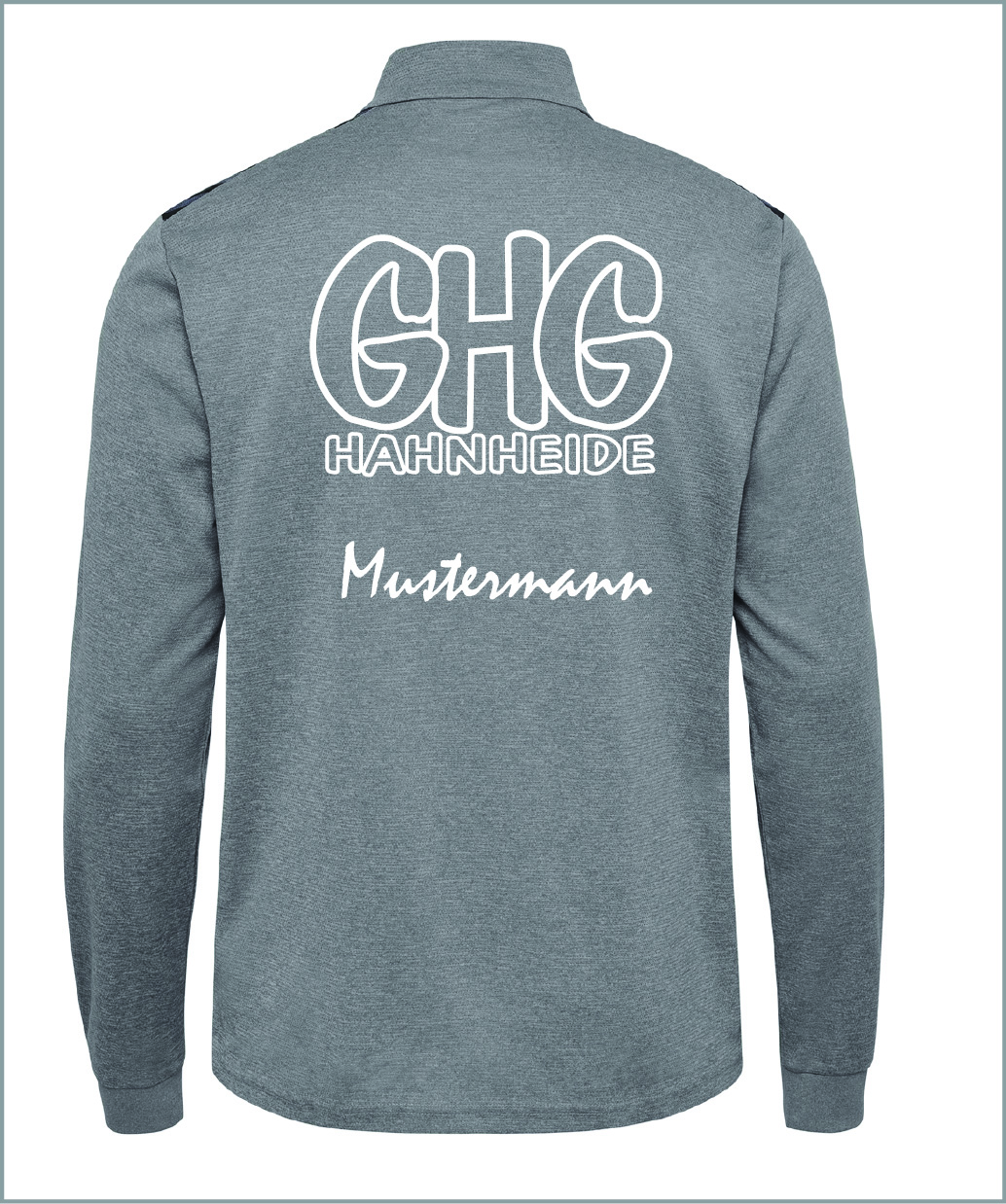 GHG Hummel Half Zipper Unisex weiß inkl. Aufdruck Gr. XS ohne Namen groß hinten