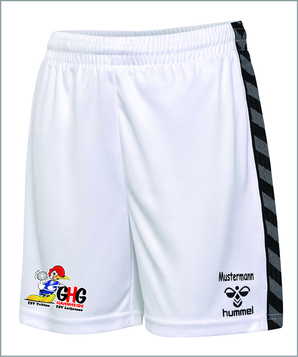 GHG Hummel Short Unisex weiß inkl. Aufdruck Gr. XL