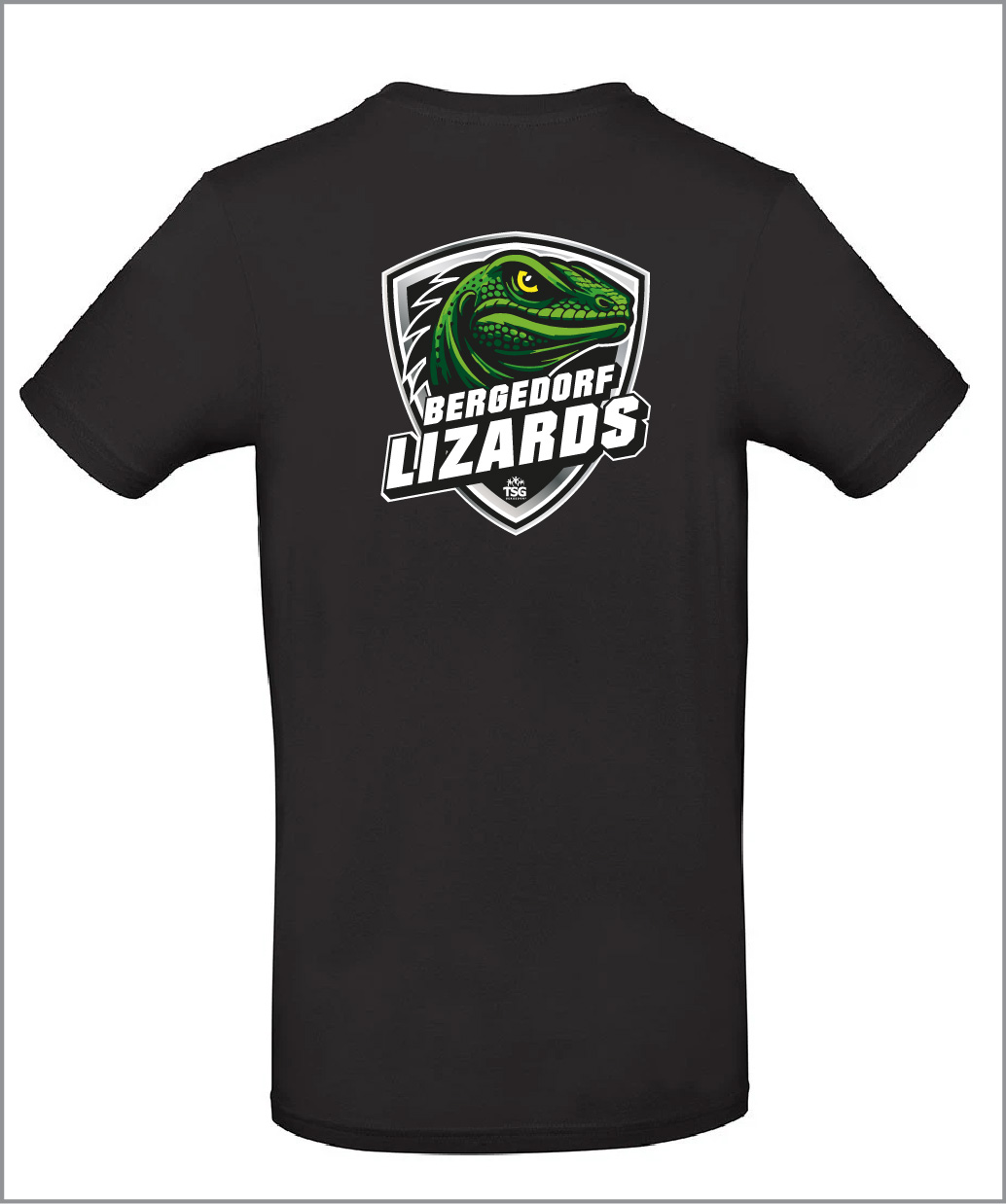 Lizards T-Shirt Damen schwarz inkl. Aufdruck, unt. Rückenlogos