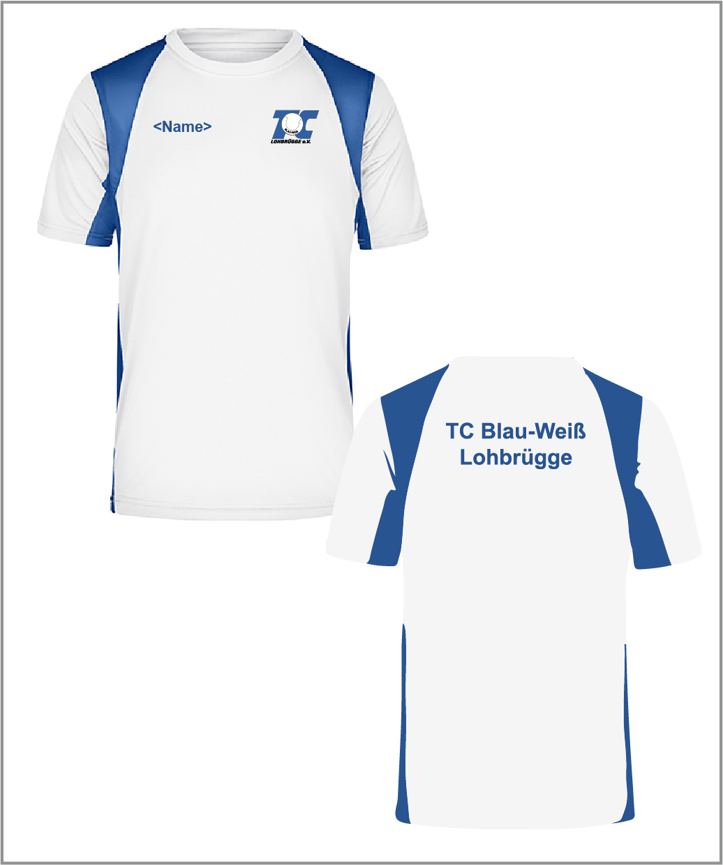 TC Lohbrügge Tennisshirt Unisex weiß/blau inkl. Logo und Vereinsname